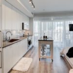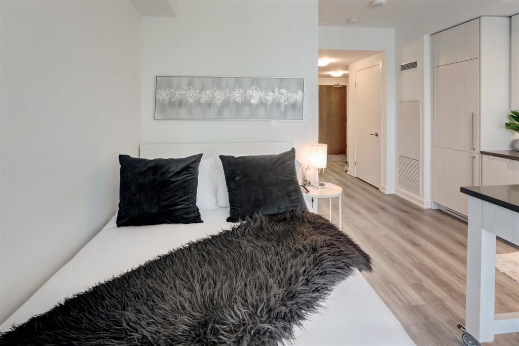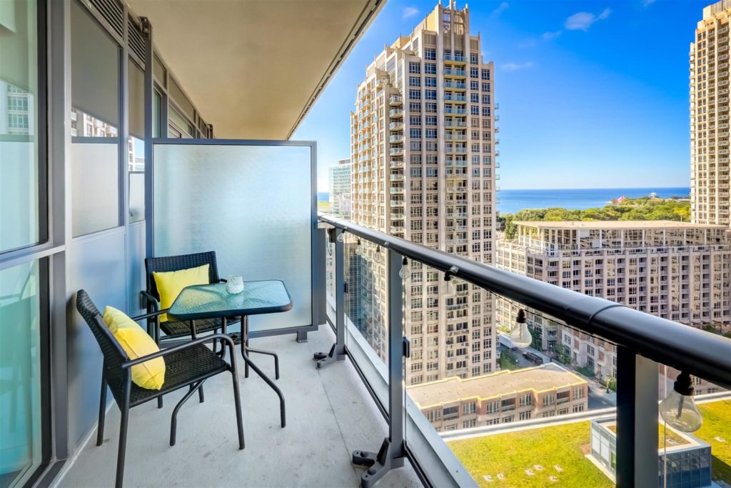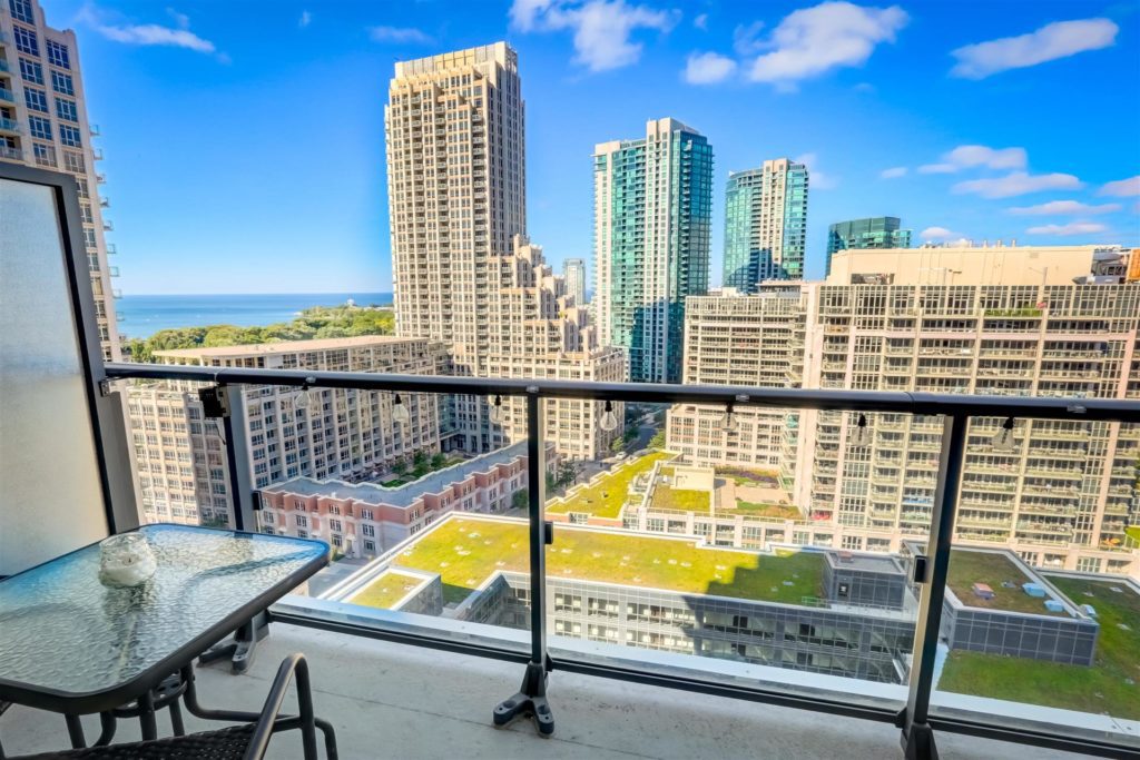 An adorable bachelor at Fortune at Fort York! Sensibly compact living with high-end finishings all around this properly proportioned suite. Durable laminate flooring, marble tile accents, full-sized appliances, large single basin sink, pull-down kitchen faucet, under cabinet lights, smooth ceilings & a neutral & modern colour palette. Walk out to calming lake views on an approximately 14′ x 5′ west-facing balcony for wonderful afternoon sun. Locker included for helpful additional storage space.
