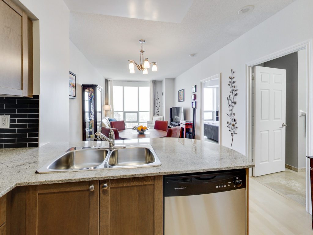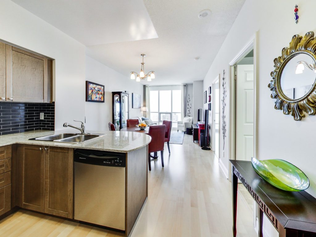 Welcome To Your Sweet Spot In The Sky With Never-Ending Unobstructed East Views From The Residences Of College Park! Functional U-Shaped Kitchen Housing Loads Of Cupboards, Storage & Breakfast Bar. Open Concept Living/Dining/Kitchen W/ 9′ Ceilings. Generously Sized Bedroom For Much More Than Just A Bed. Semi-Ensuite Bathroom W/ Marble Floor & Bathtub Tiles Plus Extra Linen Closet Storage. Locker On Same Floor As Unit. Prime P1 Level Parking!