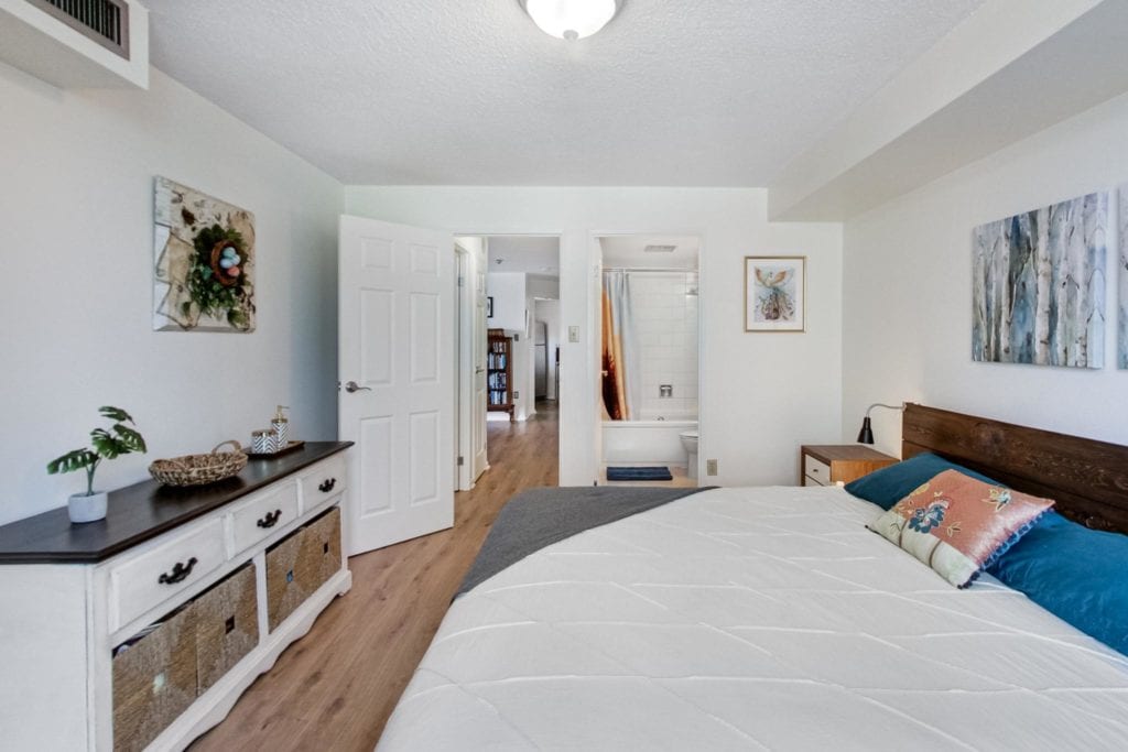 A well thought out 855 sq.ft. 2 bedroom and 2 bathroom suite in a warm & well maintained building. Welcome to a sizeable kitchen with plenty of cupboard & counter space. Check out the huge master bedroom that easily fits a king sized bed & more! Two full bathrooms that both include tubs, plus extra space in the laundry room for storage and shelving. New flooring in great condition (2017), new windows (2018), and a spacious & private balcony overlooking east facing green space. Quite an attractive price for space in central downtown Toronto, too!